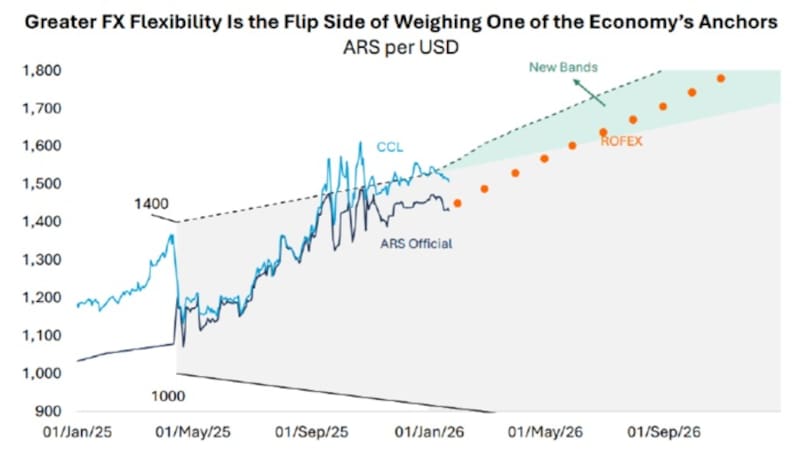 “Los bonos a tasa fija y el dólar futuro operan a tipos de cambio implícitos que quedan por debajo del escenario proyectado para el techo de la banda. Hoy cuesta ver activos cuyo precio de equilibrio esté por arriba del techo de la banda”, dijo.