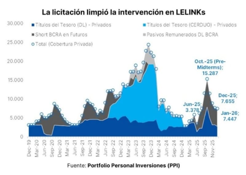 “Con tasas implícitas cercanas al 3,1% TEM y un consenso creciente de que la inflación de enero retomaría un sendero descendente, el costo de dolarizar carteras hoy luce elevado. En este contexto, la tasa en pesos actúa como un ancla que desalienta la cobertura y favorece estrategias tácticas de carry, algo que también quedó reflejado en la última licitación de deuda, donde la demanda se volcó mayoritariamente a instrumentos en moneda local”, detallaron.
