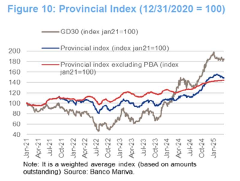 Y es que, cuando se excluye a la deuda de Provincia de Buenos Aires (PBA) del análisis, los bonos sub soberanos operan en máximos, según el índice de deuda provincial elaborado por los analistas de Research Mariva.