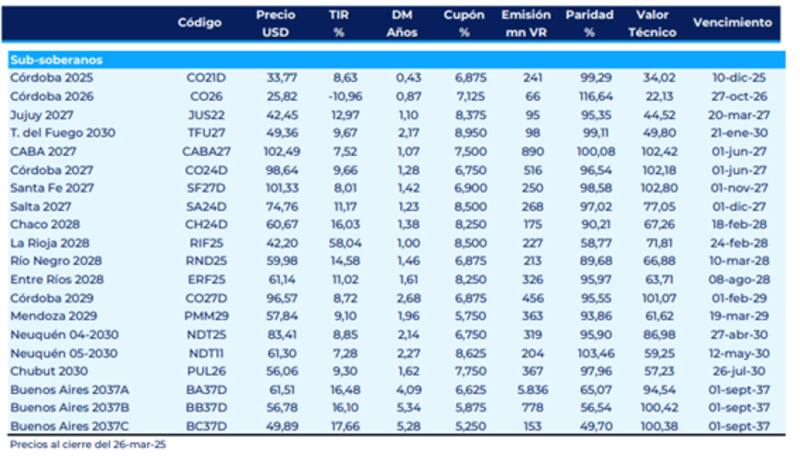 Desde Research Mariva agregaron que ven al bono de CABA (BUEAIR 27) como el titulo más defensivo dentro de la curva sub soberana.