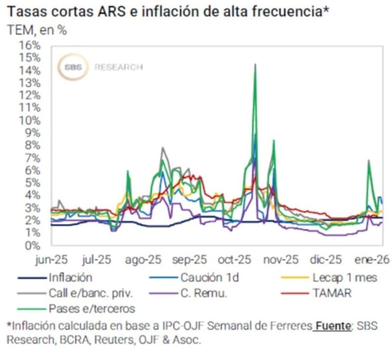 “La suba estacional de la demanda de dinero llevó el stock de simultáneas a niveles muy bajos, motivó la reaparición de los pases activos y presionó sobre las tasas de interés reales. Pero este efecto se empieza a revertir en la segunda semana de enero y se consolida con fuerza en febrero, por lo que las tasas reales deberían caer en las próximas semanas”, indicaron desde Facimex.