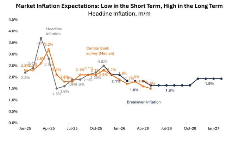 Esto tuvo un impacto en los bonos en pesos, aunque las expectativas de desinflación se mantuvieron intactas, con un sendero de inflación a la baja en los próximos meses.