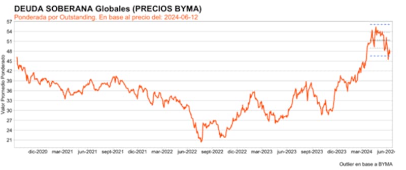 "En este contexto en que la incertidumbre política escaló en las últimas semanas y en que los flujos de liquidación de exportaciones ceden pese a la mejora en el agro, posiciones defensivas como GD41 cobran valor, siendo un Global de floja performance relativa reciente contra el resto de la curva que cuenta, además, con mejores condiciones legales que otros, detalló.
