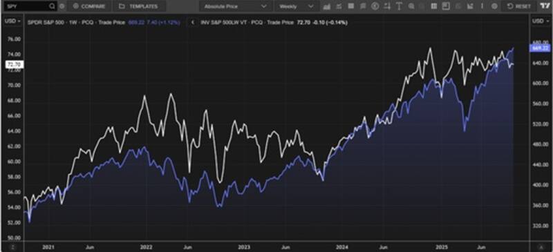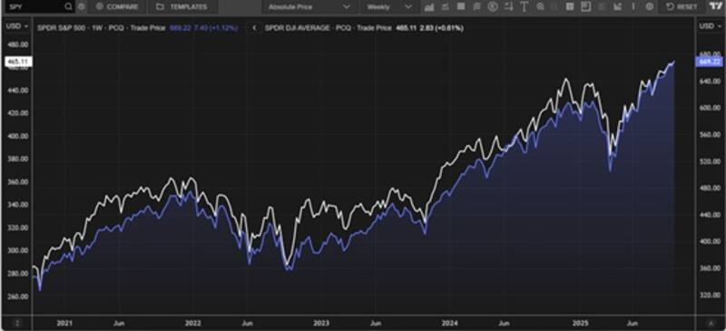 Las acciones que forman parte del Dow Jones son compañías estables y maduras, las cuales tienen un beta (volatilidad medida contra el S&P500) más bajo.