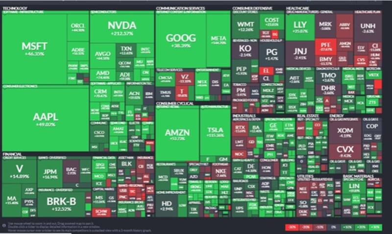 Esto demuestra que la gran mayoría de las acciones en Wall Street están con un saldo positivo.