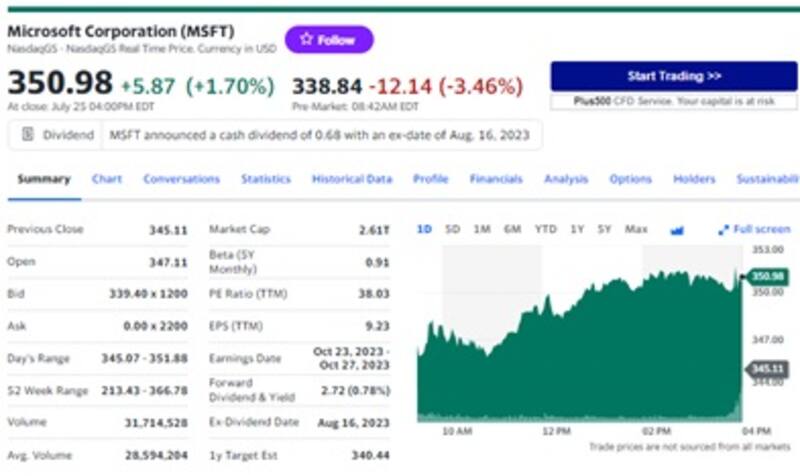 Por otro lado, Microsoft también presentó resultados al cierre de la rueda de ayer. Pese a los buenos números, la acción cae 4% en el día de hoy.
