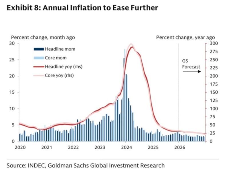 Según un informe enviado a sus clientes, los analistas de Goldman Sachs estimaron un proceso de mayor desinflación hacia adelante, aunque con una tendencia menos bajista respecto de la desinflación observada hasta ahora.