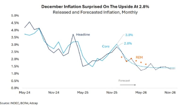 Mirando a los próximos meses, consideran que en febrero la inflación podría desacelerar en el margen, pero permaneciendo por encima del 2% mensual, para luego volver a acelerar en marzo dado que es el mes estacionalmente más desafiante del año