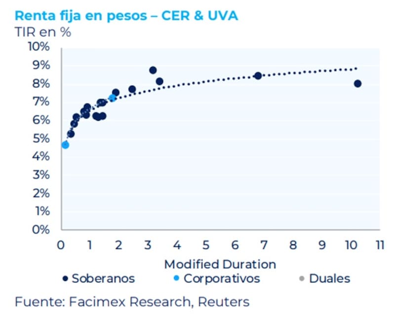 Bajo este escenario, y dada la reciente suba de tasas en los CER, la curva que ajusta por inflación podría presentar un punto de entrada ante una expectativa de menor inflación hacia adelante y tasas que quedaron elevadas.