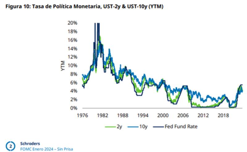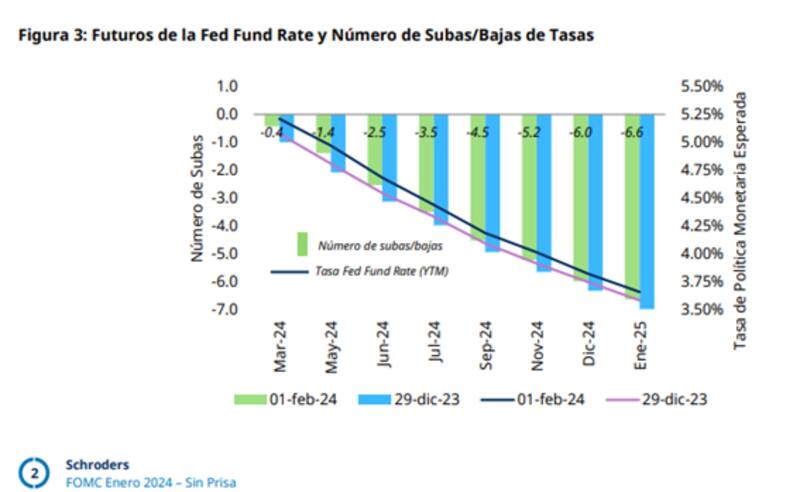 Juan Cruz Lekovic, fund manager de Schroders, detalló que los últimos datos económicos reflejan una actividad económica creciendo por arriba de las proyecciones de la FED, un mercado laboral más sólido y cierta persistencia inflacionaria.