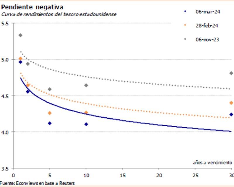 Esto son niveles superiores respecto de la curva que se evidenciaba en noviembre pasado, cuando todos los tramos cotizaban debajo de 4,5%.