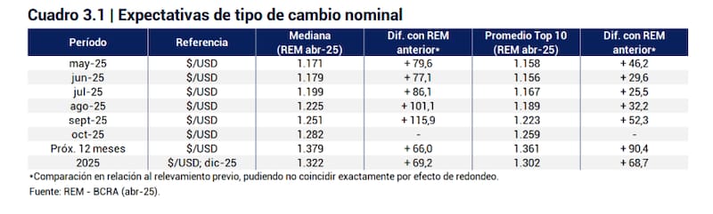 La mediana de las proyecciones de tipo de cambio nominal del REM se ubicó en $ 1171 por dólar para el promedio de mayo de 2025.