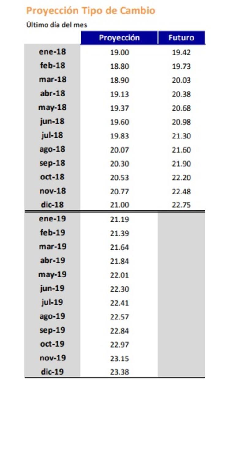 "Factores externos como la debilidad del dólar a nivel mundial -que alcanzó su menor nivel en los últimos tres años- y la apreciación de las monedas emergentes deberían favorecer al peso argentino. Dejamos sin cambios nuestra proyección de tipo de cambio para fines de 2018 a $ 21, pero modificamos el sendero mensual dada la reciente evolución de la moneda", apuntó.
