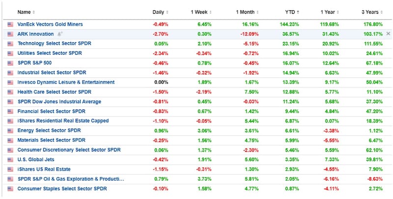 A nivel sectorial, el índice de mineras evidencia una ganancia de 144% en el año, seguida por el sector de tecnología a largo plazo (ARKK) que gana 31%.