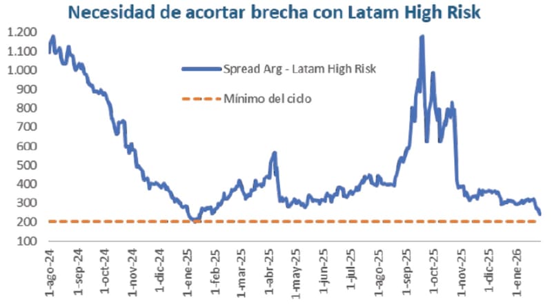 A su vez, resaltó que “con el nuevo esquema de acumulación de reservas ya en marcha y un contexto externo que vuelve a validar el apetito por crédito emergente, Argentina se encamina a una compresión adicional en el riesgo país, lo que acerca el posible regreso al mercado internacional de deuda soberana en dólares”.