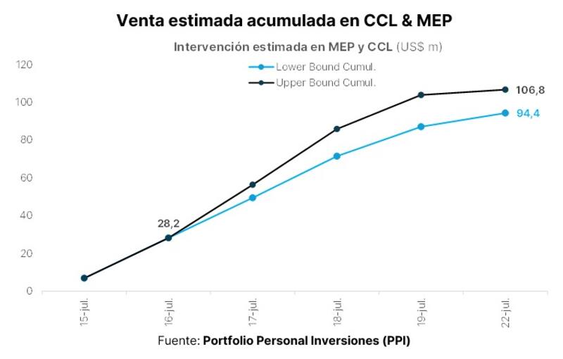 Los cálculos de Pedro Siaba, jefe de investigación de PPI, señalan que, desde el lunes de la semana pasada, tras el anuncio de intervención, el BCRA habría gastado alrededor de u$s 100 millones para contener la presión alcista. En tanto, la estimación del analista Salvador Vitelli asciende a unos u$s 120 millones.