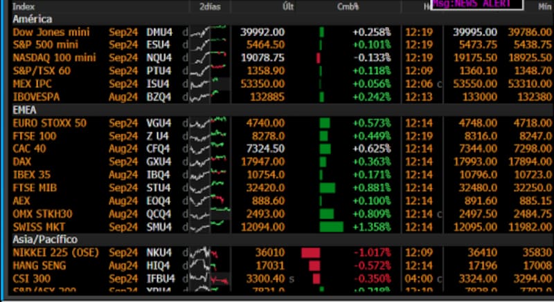 El mercado no muestra grandes cambios el miércoles y dicho movimiento se da luego de una importante recuperación de las acciones desde el piso del lunes pasado, cuando los principales índices accionarios abrieron con caídas mayores al 5% por temores recesivos y la suba de tasas del Banco de Japón.
