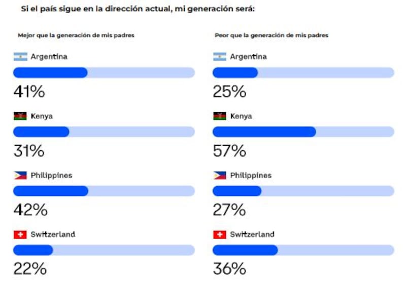 La cifra de Argentina se asemejó a la de Filipinas, en donde un 42% respondió que su generación estará mejor en términos financieros.