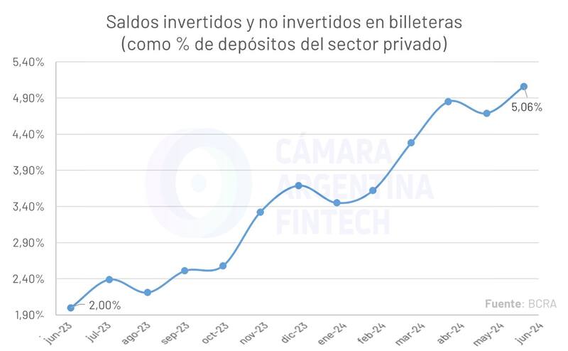 De acuerdo a los últimos datos oficiales, en junio se registraron 14,5 millones de cuentas de pago con un saldo de $ 369,7 mil millones, mientras que los saldos invertidos en FCI de dinero alcanzaron los 2,5 billones de pesos.
