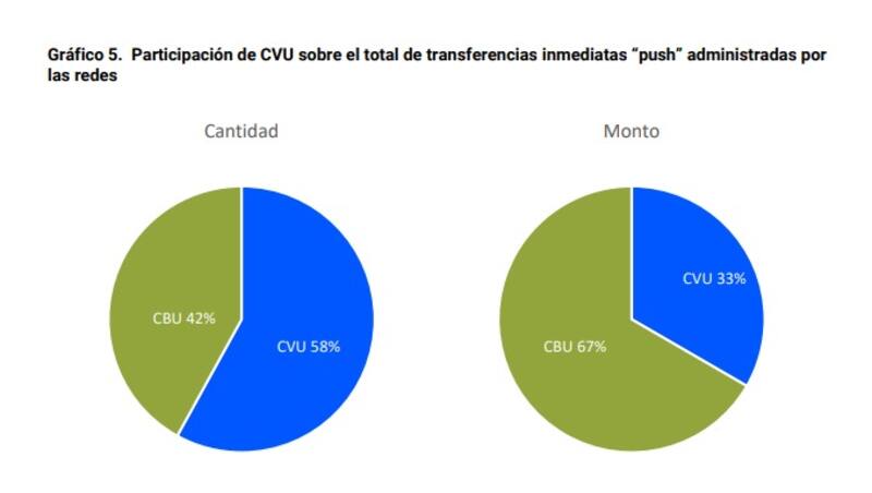 Al tener en cuenta lo ocurrido en las administradas por redes (off-us): se registraron 555,9 millones de transacciones por $ 46,3 billones, que implican incrementos interanuales del 93,3 % y del 39,7 %, en cantidades y en montos respectivamente. El 58 % tuvo como origen y/o destino una CVU.