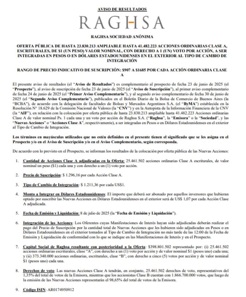 La incorporación de Raghsa se da en un contexto de reactivación del mercado primario, con tres compañías -ECOGAS Inversiones, A3 Mercados y ahora RAGHSA- que ingresaron al mercado de capitales en lo que va de 2025.