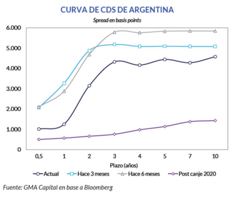 "El costo de la cobertura se abarató especialmente en los horizontes hasta 2 años. La moderación en los plazos más extendidos existió, pero fue menos generosa. De cualquier manera, la curva de CDS actual está muy lejos de lo que supo ser cuando los Globales empezaron a cotizar en septiembre de 2020", afirmó.