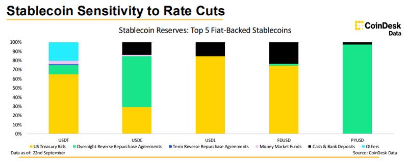 Sin embargo, el documento advierte que "la nueva era de liquidez", de la mano de los recortes de la Reserva Federal en la tasa de interés, "costarán a las stablecoins respaldadas en fiat unos u$s 500 millones en ingresos".