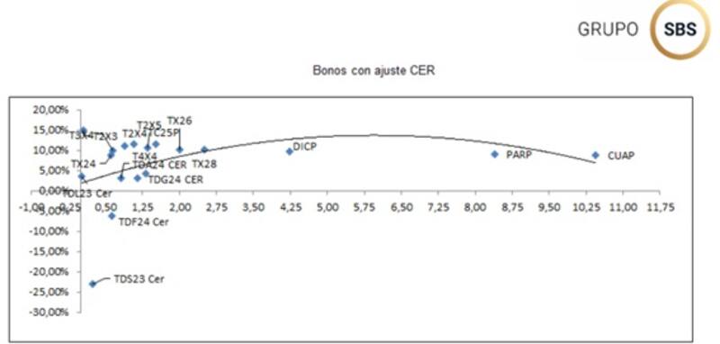 La curva de bonos que ajustan por CER se han desplazado recientemente al alza.