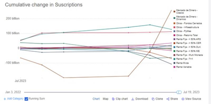 También se vio ingresos a los fondos dólar linked, en medio de especulaciones sobre un posible evento cambiario en medio de las negociaciones con el FMI.