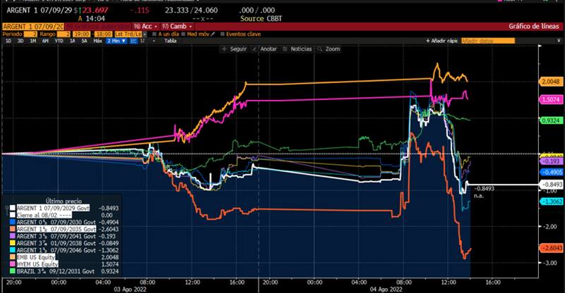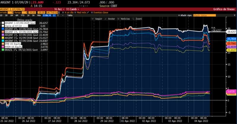 Sin embargo, en los dos últimos días, los bonos argentinos están comenzando a desacoplarse también en su tendencia.