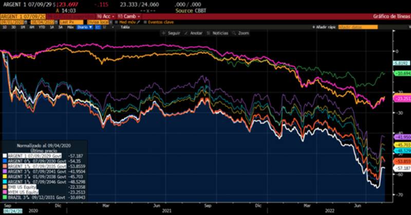 Desde que los bonos argentinos salieron a cotizar desde el canje de deuda en septiembre de 2020, la deuda perdió entre 42% y 57%, mostrando la peor performance en la historia de los bonos reestructurados.