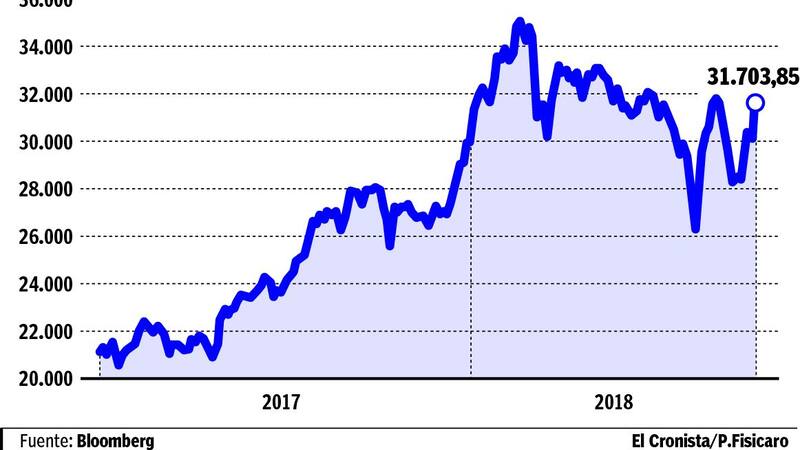 La suba del Merval reflejó el optimismo que reinó en los mercados internacionales en la primera rueda de la semana y cerró en 31.682 puntos, un 10% por debajo de su máximo intradiario, que había sido alcanzado en febrero último.