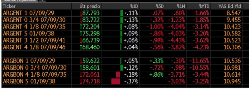 En el ultimo mes, los bonos soberanos operaron a la baja, acumulando una merma de entre 1% y 4% en los distintos tramos de la curva.