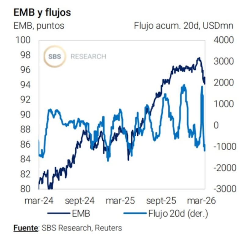 “Los flujos en la deuda emergente muestra con claridad este fenómeno. Luego de un período de relativa estabilidad y recuperación durante 2024 y parte de 2025, los capitales comenzaron a retirarse de manera abrupta. No se trata solo de una corrección técnica: es un cambio en la percepción global del riesgo”, indicaron desde Baires Asset Management.