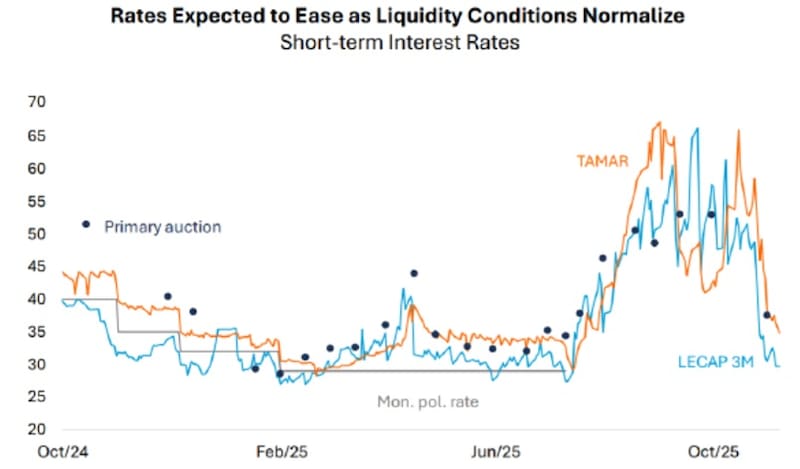 “Un marco monetario algo más claro en materia de liquidez y tasas sería importante para reducir aún más la volatilidad en las tasas de interés de mercado. Si bien la volatilidad cayó significativamente, será fundamental para dar mayor claridad a los agentes económicos una mayor certeza en la estabilidad de tasas para apuntalar crédito privado, inversión y actividad. Respecto a volatilidad, se destaca la caída de esta en materia cambiaria”, comentó Franco.