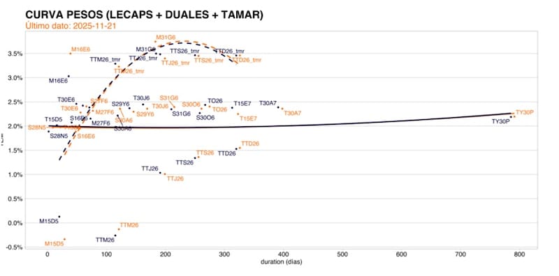 “Consideramos que los bonos Duales, junto con los CER, siguen siendo las alternativas más atractivas para capturar retornos más elevados. Creemos que la tasa TAMAR podría estacionarse en los niveles actuales del 33% TNA, favoreciendo el rendimiento relativo de los bonos Duales. En este marco, priorizamos la TTM26 (TAMAR +0,3%) y la TTJ26 (TAMAR +0,8%), cuyas TAMAR breakeven se ubican en 19,9% y 27,3%, respectivamente”, dijeron.