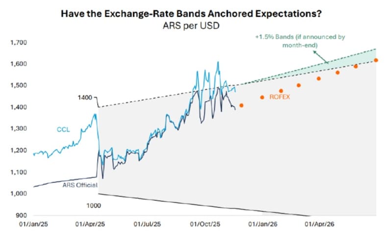 “El mercado asigna una alta probabilidad de continuidad del esquema actual de bandas. Además, el TCR implícito en pares de papeles CER/Dollar Linked muestra que se espera estabilidad en ese sentido. El gobierno ratificó el esquema en más de una oportunidad, y el mercado fue incorporando una mayor probabilidad de continuidad”, dijo Juan Manuel Franco, economista jefe de Grupo SBS.