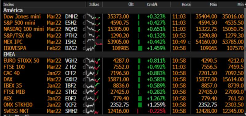 En cuanto a las acciones de Europa, estas también abren en positivo, con el Stoxx600 subiendo 0,8%. La bolsa de Francia es la que más gana, con un avance de 0,88%, seguida por el Ibex35 de Madrid, que sube 0,6%.