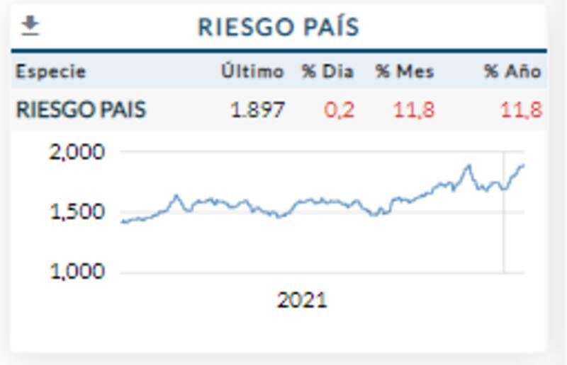 Con el selloff de los bonos, el riesgo país se disparó a máximos de 1910 puntos y cerró en el día de ayer en 1897 puntos básicos.