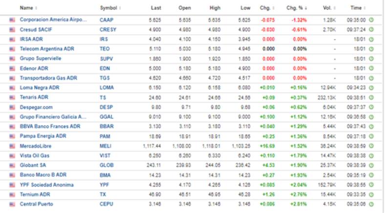 Por el lado de los ADR, estos inician el miércoles con mayoría de ganancias. Salvo Corporación América y Cresud que caen 1,3% y 0,6%, el resto de las acciones opera con subas.