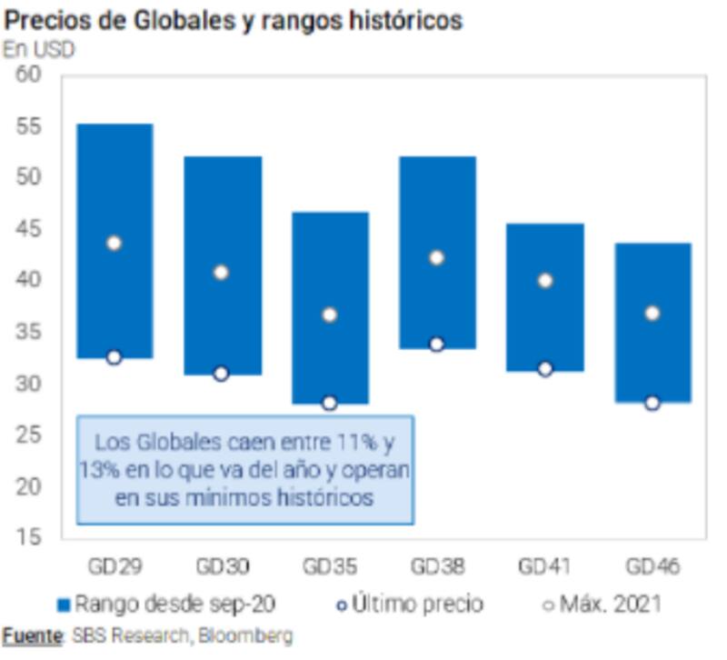 Por su parte, desde Grupo SBS marcaron que los Globales caen entre 11% y 13% en lo que va del año y operan en sus mínimos históricos.