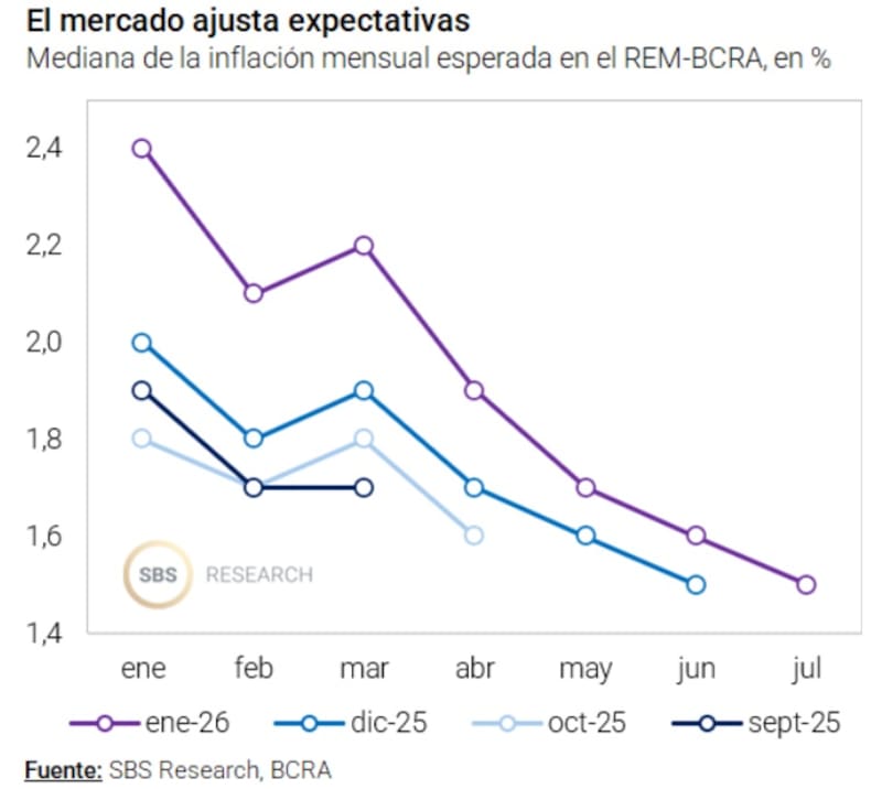 La mediana de los analistas elevó su proyección de inflación hasta 22,4% en 2026, )por encima del 20,1% estimado el mes pasado) y al 15% en 2027, por encima del 12,7% del REM anterior.