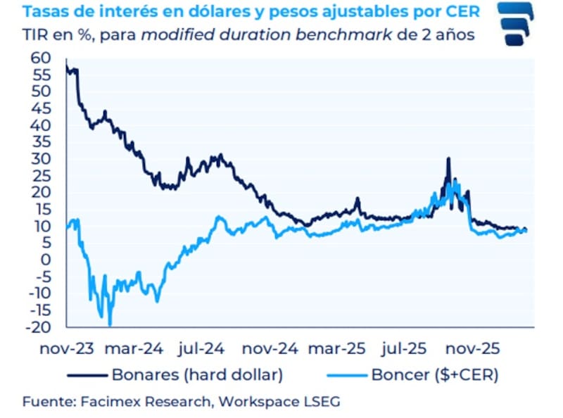 Los analistas de Facimex Valores señalaron que el tramo largo de la curva CER quedó rezagado frente al rally de la curva hard dollar.