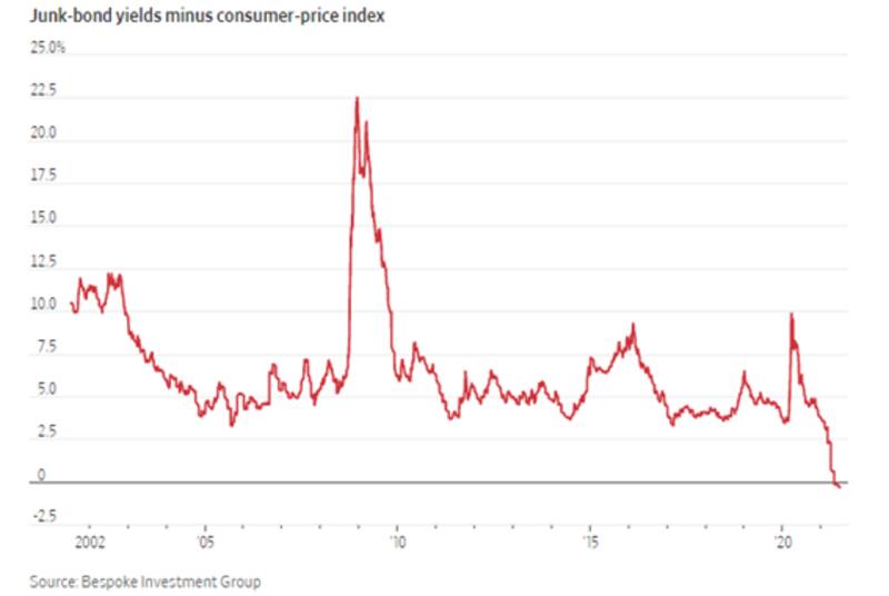 El rendimiento que reciben quienes invierten en las empresas estadounidenses más riesgosas cayó por debajo de la inflación por primera vez en la historia. Estos bonos son conocidos como "deuda junk" y pertenecen a las empresas que tienen más probabilidades de default.