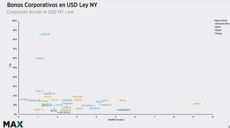 "A las condiciones objetivas hay que ponerles un precio. En este sentido entendemos que la deuda corporativa sigue castigada en términos relativos, a pesar de la compresión de rendimiento de este año. El spread con respecto a corporativos high yield norteamericanos se ubica en los 597 puntos básicos, lo que implica un diferencial de rendimiento considerable. Los pagos extendidos en el tiempo y un cupón bajo corriente hacen que los inversores vean poco atractivo en los soberanos y esto podría implicar tasas exigidas más altas que si hubiese una estructura más simple", dijo.