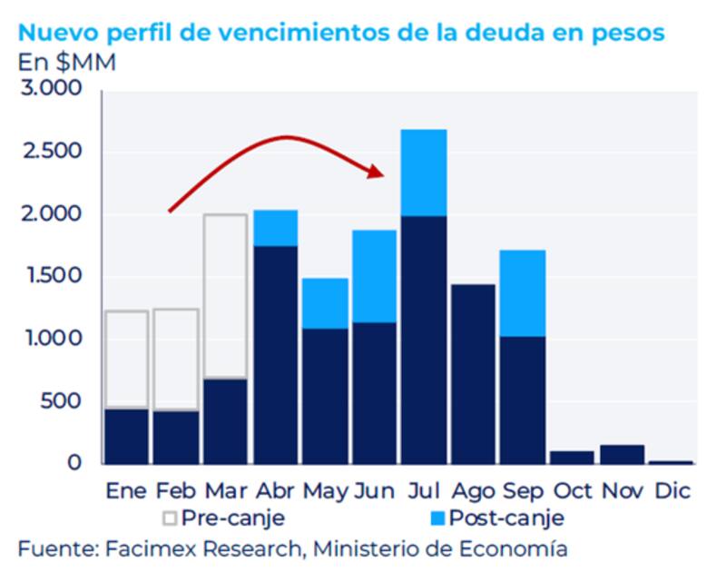 Por lo tanto, el Tesoro sigue enfrentando la dificultad de poder alargar duration, llevando a la situación a una acumulación de vencimientos cada vez más grande.