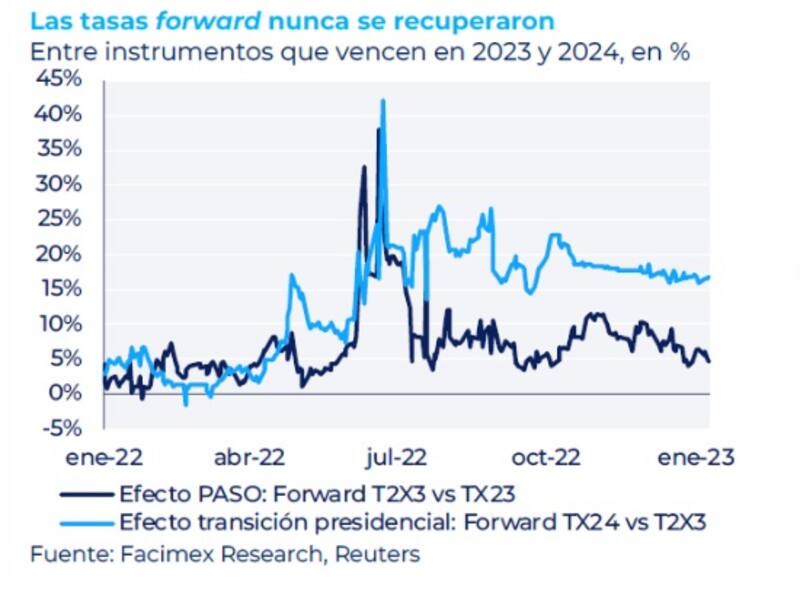 Adrián Yarde Buller, economista jefe y estratega de Facimex Valores, resaltó que desde que comenzaron las presiones alrededor del mercado de deuda en pesos en junio, las tasas forward entre instrumentos con vencimiento entre 2023 y 2024 nunca volvieron a niveles normales.