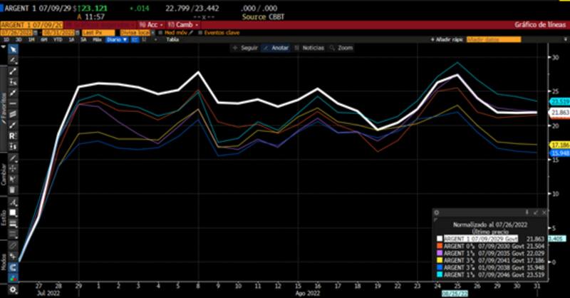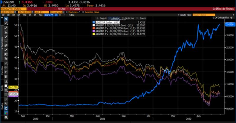 Al igual que ocurrió con el resto de los bonos a nivel global, la deuda argentina también se vio golpeada por la suba de tasas global.