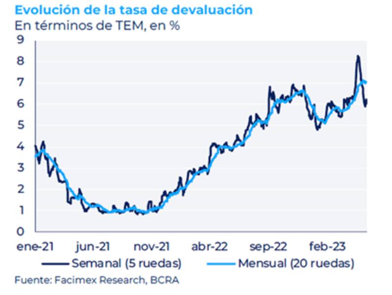 "Aunque con volatilidad, es clara la aceleración del ritmo devaluatorio para mantenerse más acorde al ritmo inflacionario", sostuvieron.