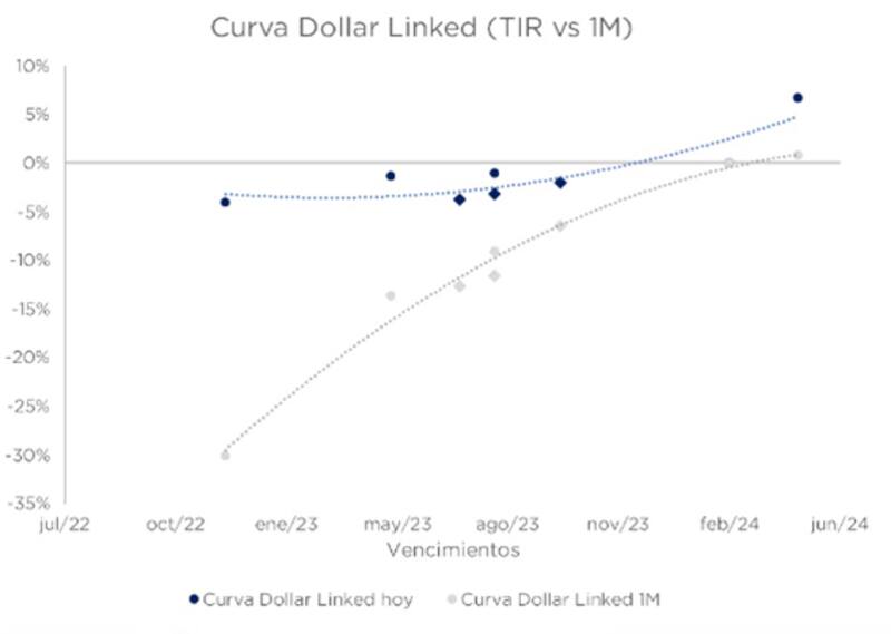 La curva dólar linked pasó de rendir -27% en el tramo corto a -3% actualmente.